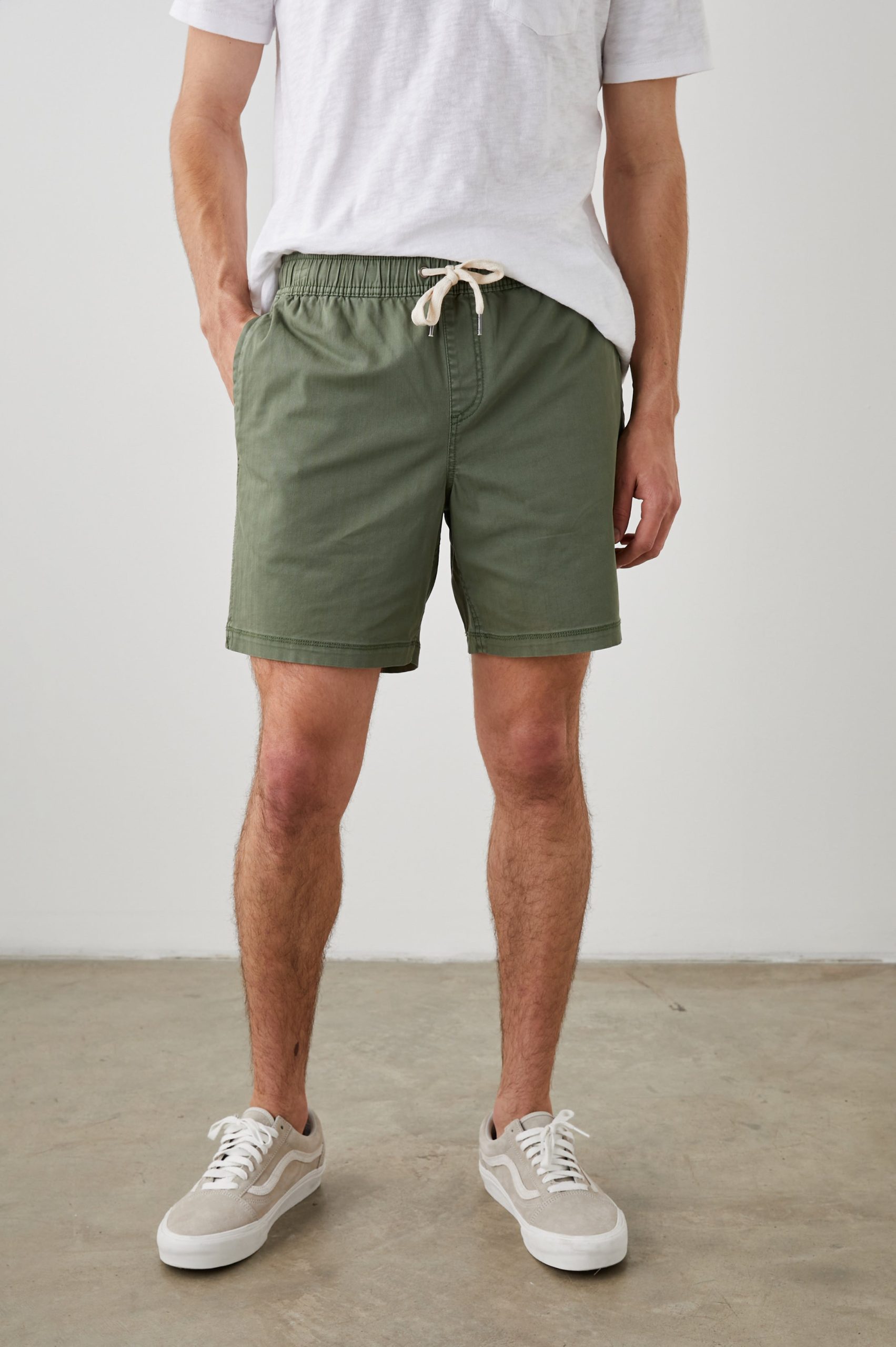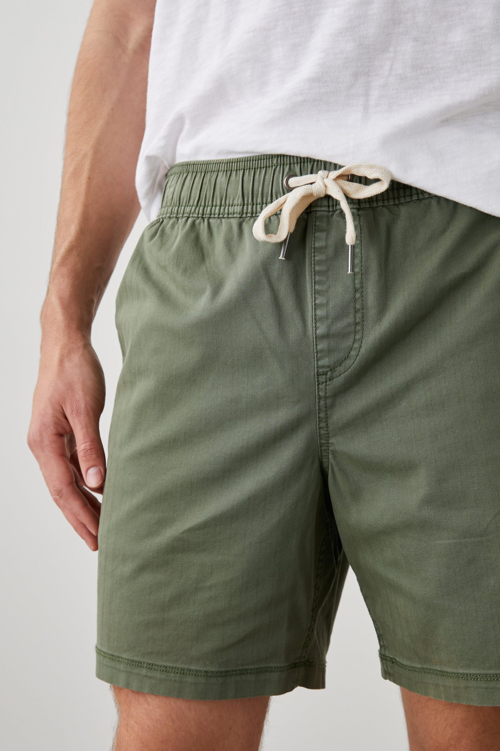 This military-inspired short with a specially developed vintage wash finish has the perfect rugged-cool look and soft, lived-in hand feel. These shorts feature a contrasting white adjustable drawstring, side pockets, two rear flap pockets with a button closure, and a touch of stretch for all day comfort.