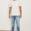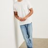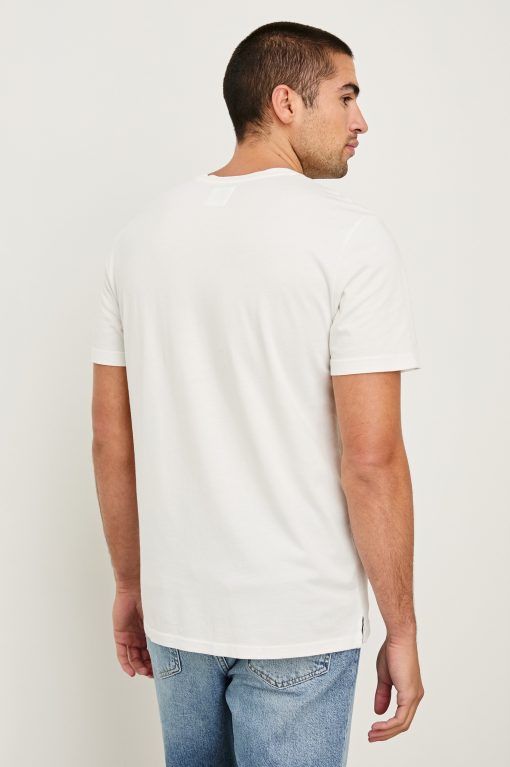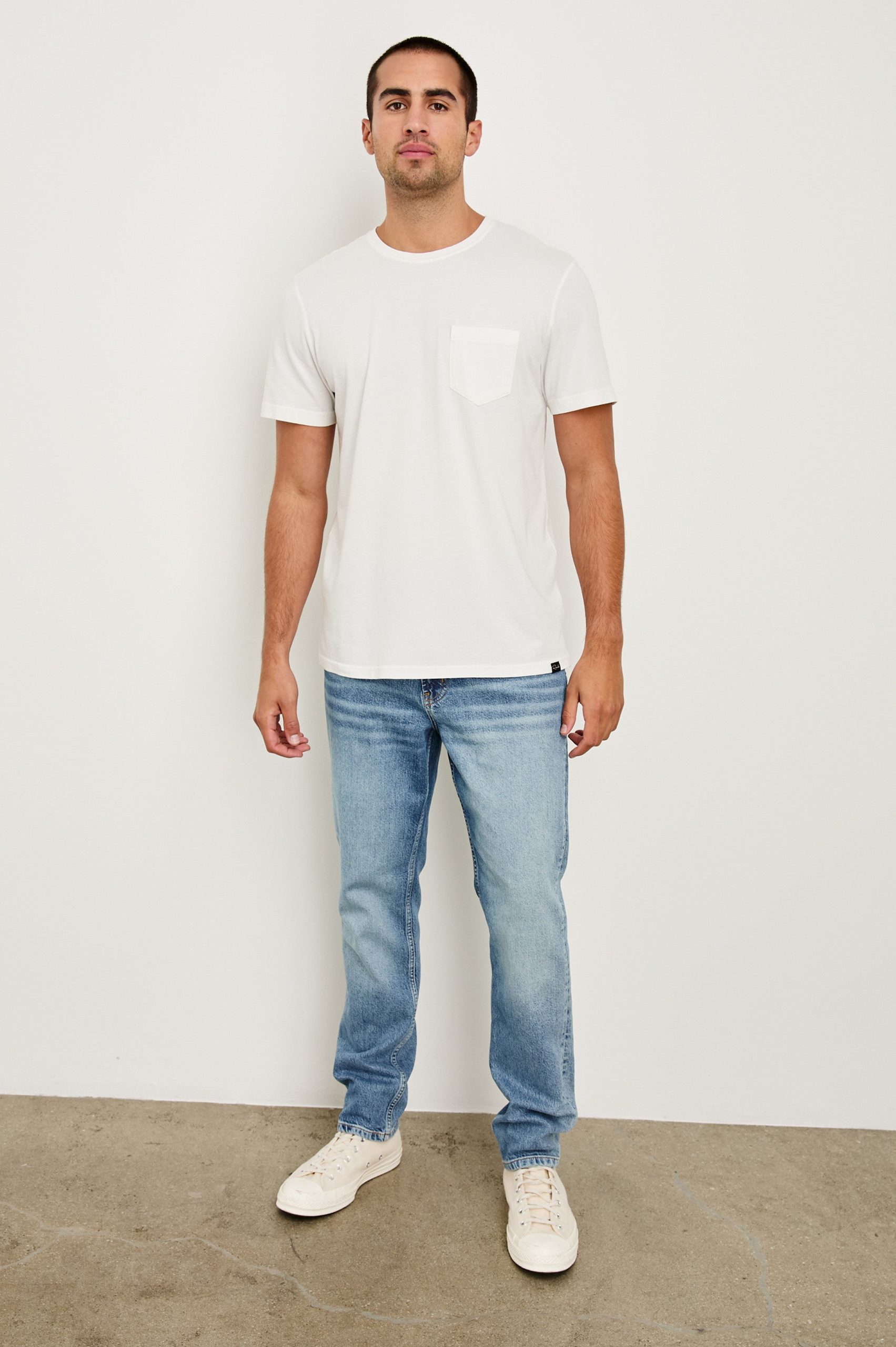 Perfect for layering or wearing alone, this is sure to be your new favorite comfy tee to wear everyday. Made from custom designed super soft cotton modal fabric with a vintage wash effect for a luxe, lived in look this white crew neck t-shirt features a classic fit, patch pocket at chest, and functional side vents.
