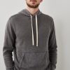 Lightweight cotton, gauze jersey, long sleeve, washed black pullover hooded sweatshirt featuring front pocket, drawcord hood, and rib trim. Thoughtfully designed with ergonomic stitching for maximum comfort and movement. Great for layering.