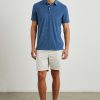 The Rhen Polo Shirt presents a Southern California vintage aesthetic while leaning into contemporary style. Designed with a two-button placket, this dark blue polo is made from a towel terry, viscose blend that gives it a pleasingly soft feel.