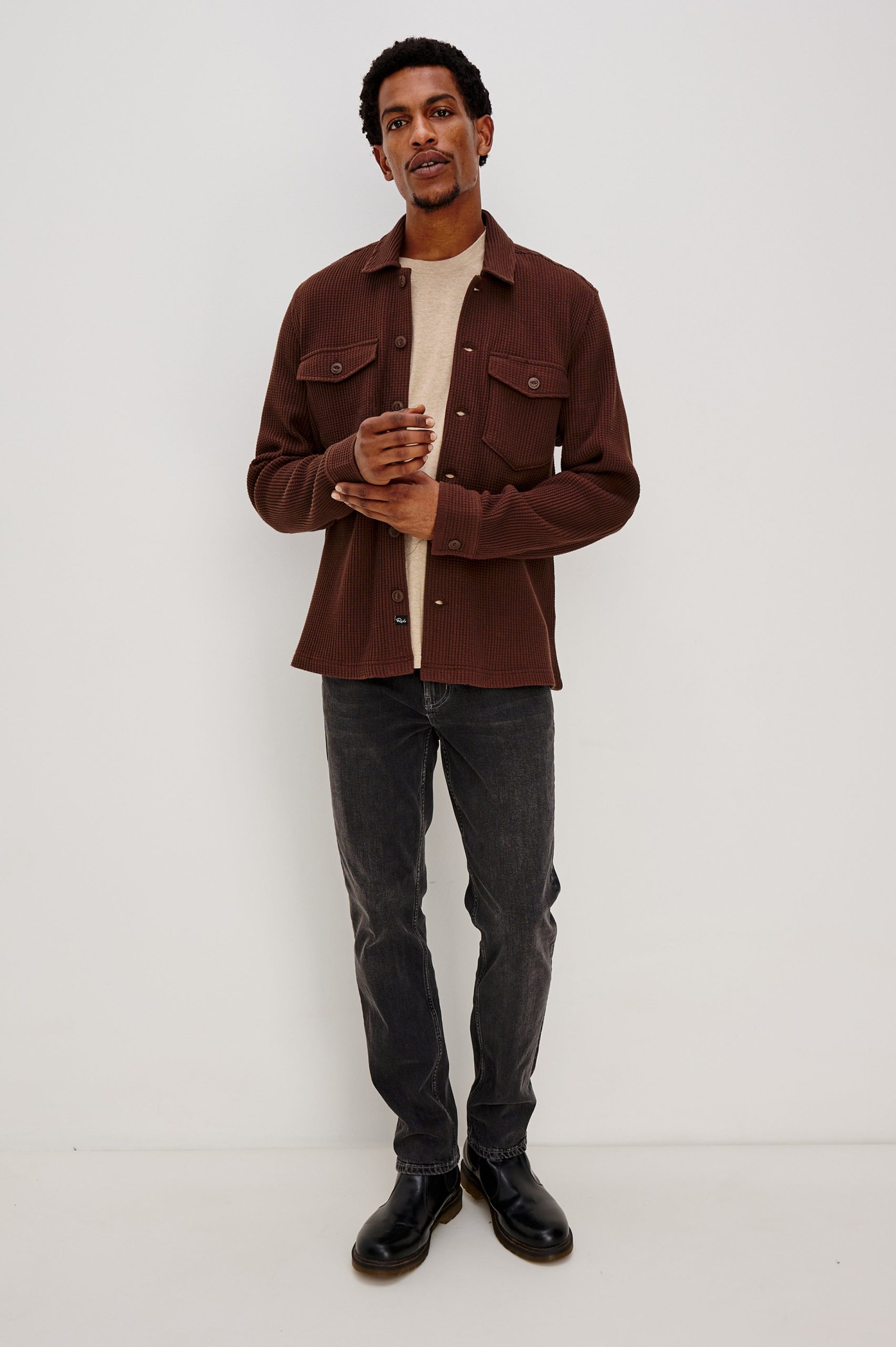 Made for layering, the Wells is a cotton-blend shirt jacket with subtle ribbing and classic flap pockets. Lining under the collar and cuffs give it the structure you want in an overshirt.