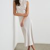 The midi skirt dreams are made of. This high-waisted pullover style is crafted from a luxe satin crepe fabrication with intricate eyelet detailing and features a concealed elastic waistband for all-day comfort. Dress down with a t-shirt or your favorite sweater, or add heels to transition from day to night.