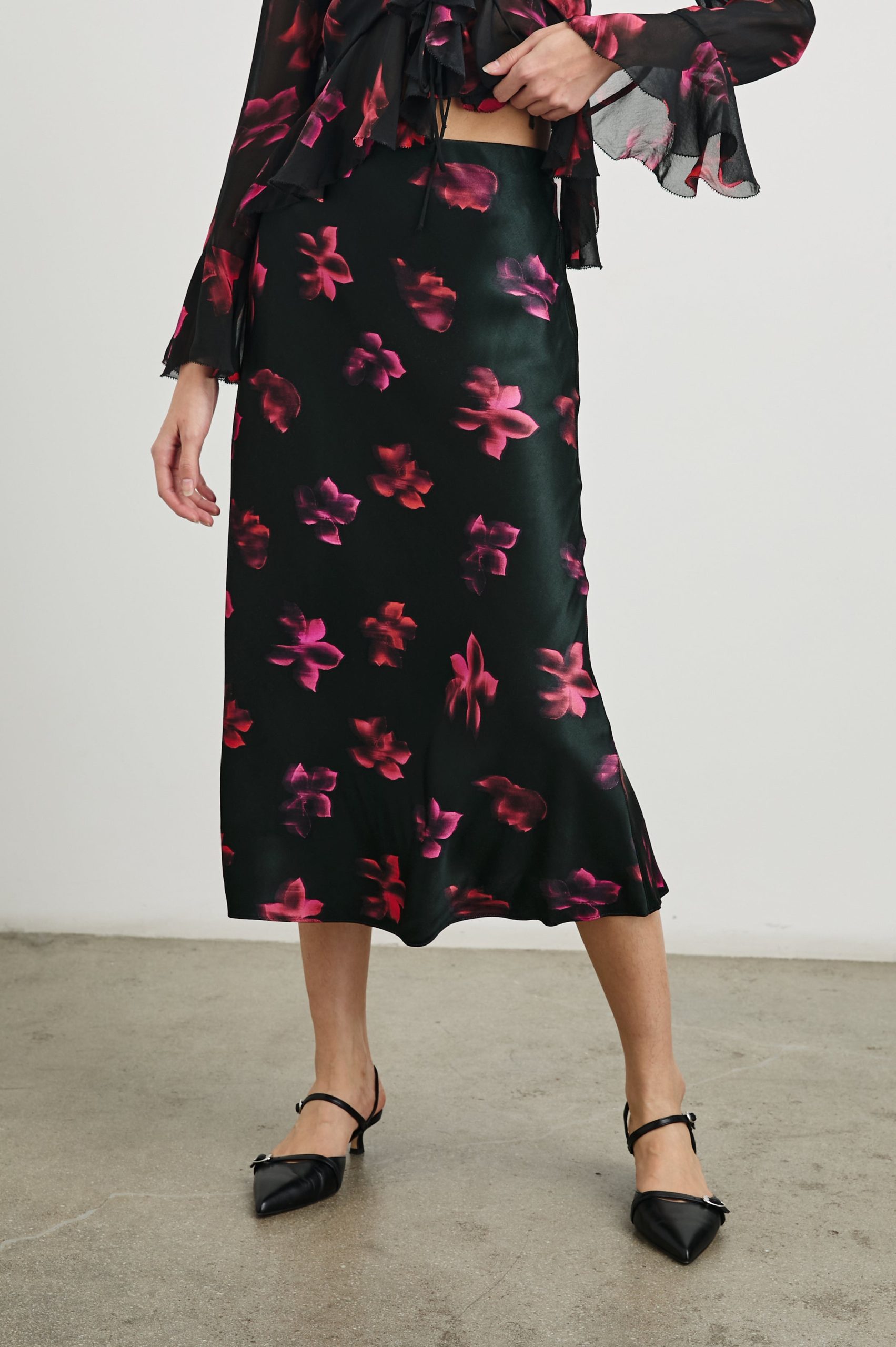 The midi skirt dreams are made of. This high-waisted pullover style is crafted from a luxe satin crepe fabrication and features a concealed elastic waistband for all-day comfort. Dress down with a t-shirt or your favorite sweater, or add heels to transition from day-to-night.