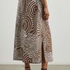 The statement skirt of the season. Designed with a flattering midi length, functional ties at the waist, and a brown and white swirl print, this style is up for any adventure this summer and beyond.