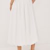 The cotton poplin Cala is a full midi skirt designed with a bubble hem. Finished with an elastic waistband for extra comfort—plus, pockets.