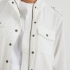 The Collins Jacket is a clean-cut outer layer made of 100% double gauze cotton—perfect for transitional weather and chilly, summer nights. With a military-inspired design, the white jacket features a toggle-drawstring hem, shoulder epaulets, cargo chest pockets, and breathable back flap.
