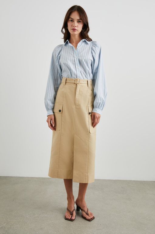 From work meetings, to weekend escapes and beyond, the Cyrus has you covered this season. Made from soft yet structured cotton twill, the utilitarian-inspired skirt makes a statement on its own or pairs perfectly with the Lucien coat.