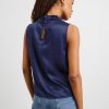 The Kaleen Top is a contemporary tank crafted from smooth, satin back crepe. It features a draped mock neck and fluid silhouette with a traditional camisole fit.