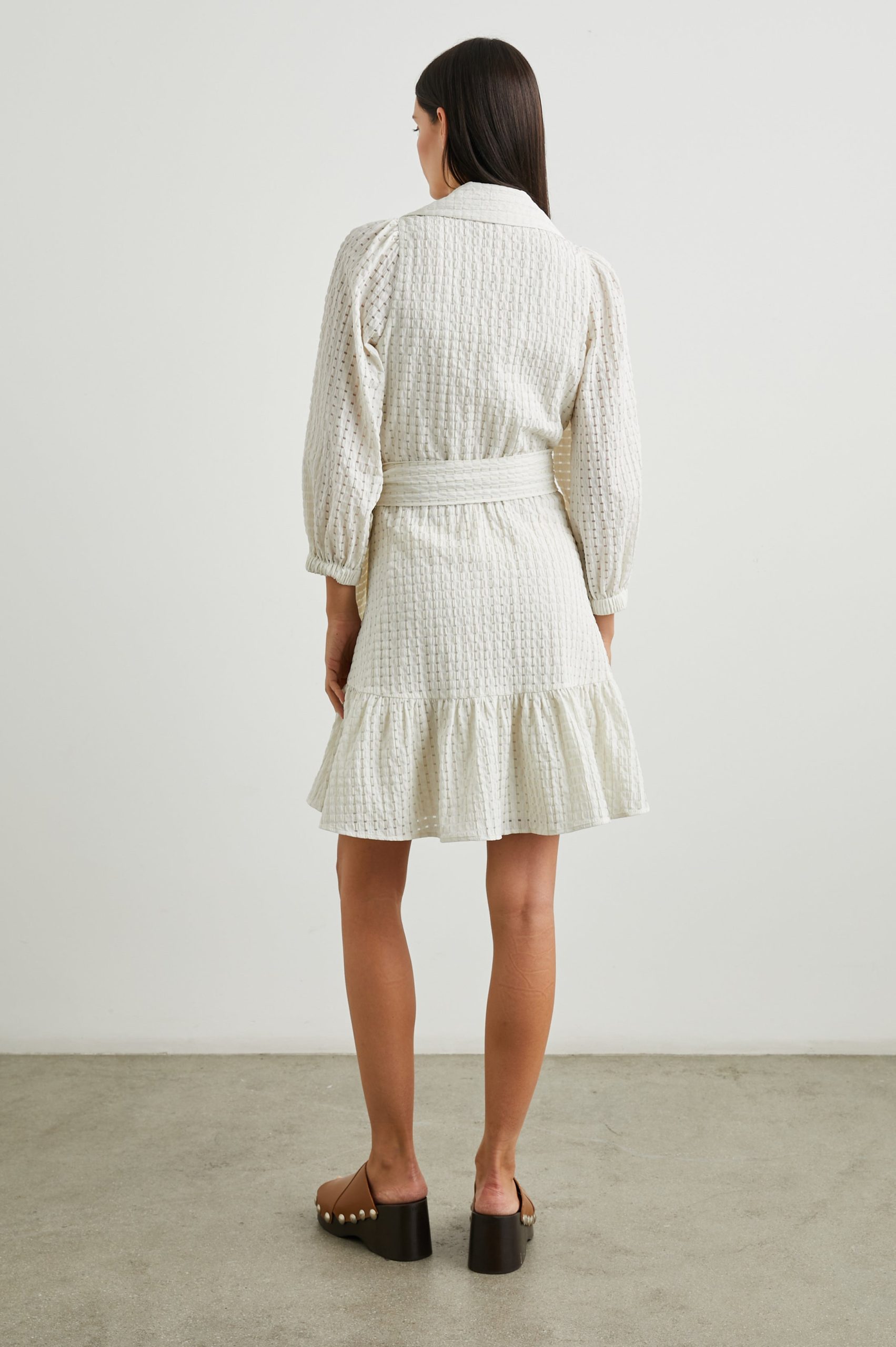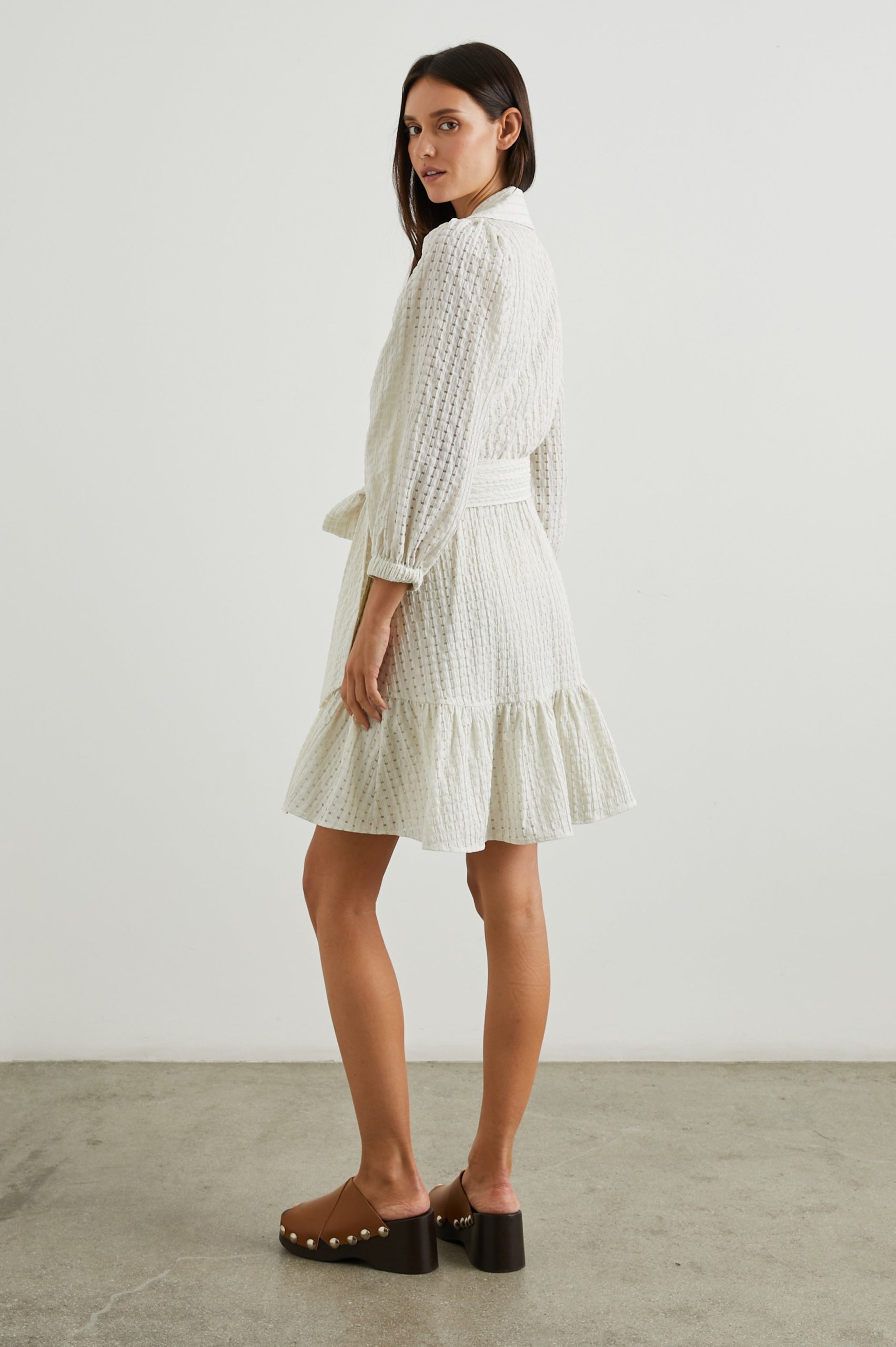 Every closet needs a little white dress. Lucky for you, Kiara is up to the task, with a unique seersucker fabrication and collared silhouette. This style pairs with heels just as well as it does with sandals for versatile wear across many occasions.