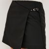 Meet your new favorite mini. The Nial is a faux-wrap skirt with a side zip, decorative pockets, back darting, and an adjustable metal buckle for a customized fit.