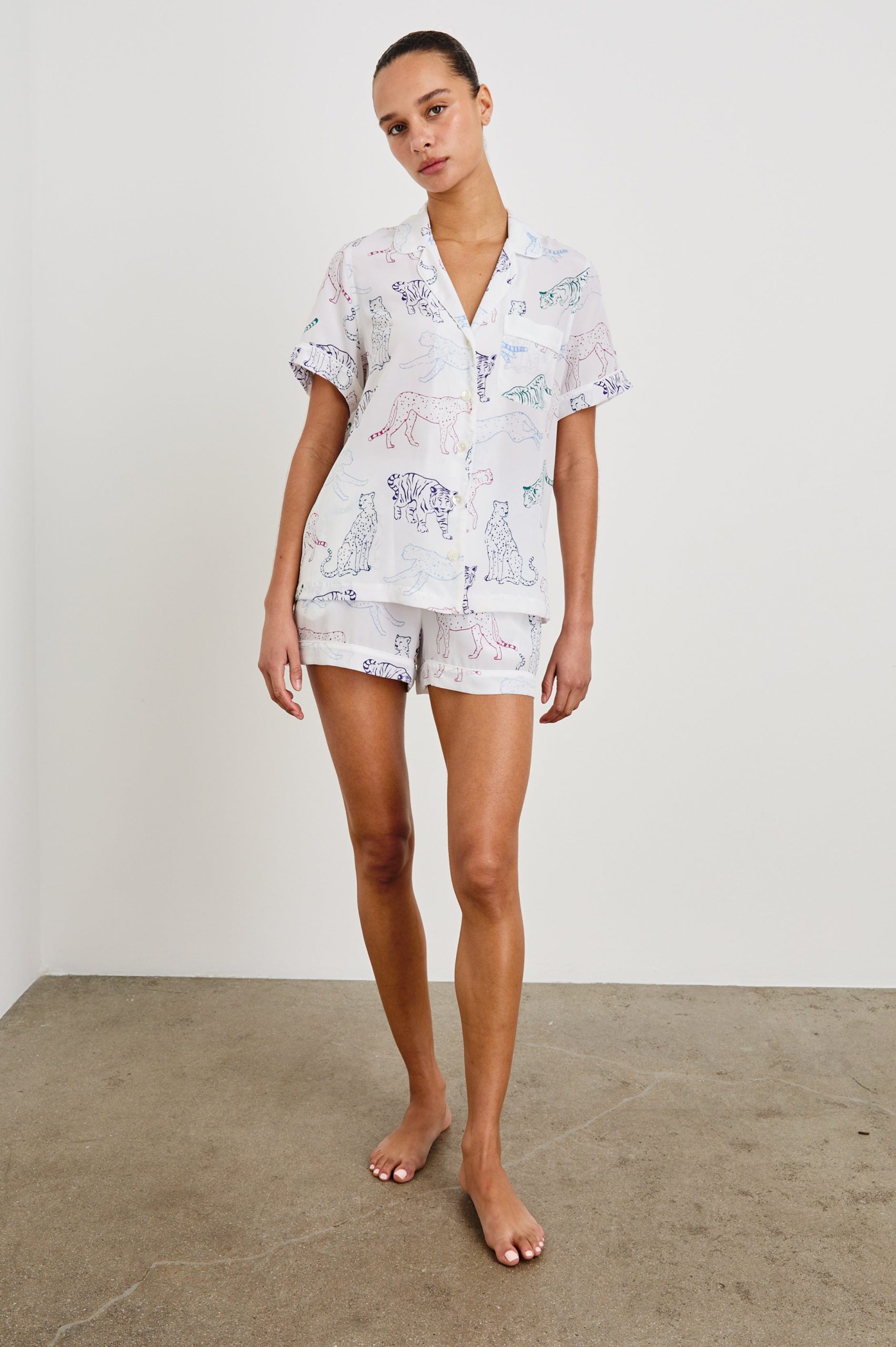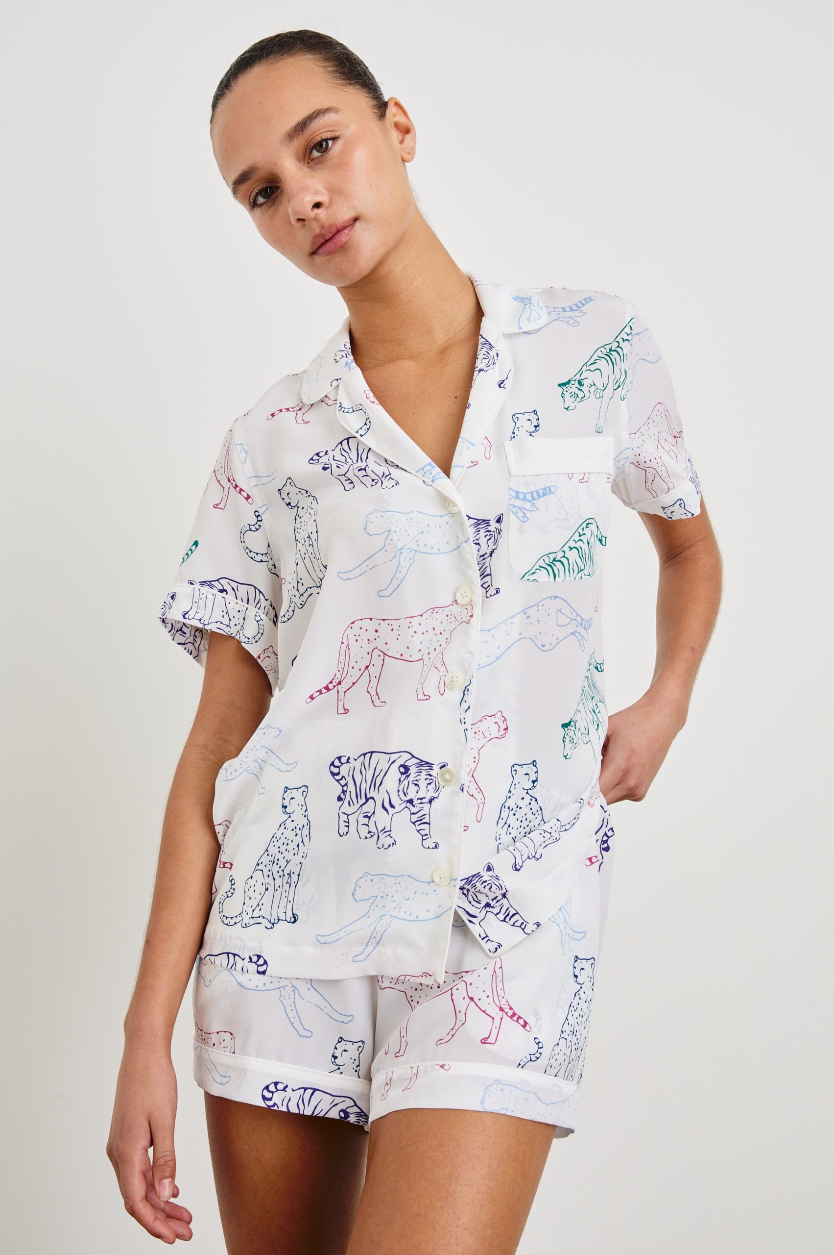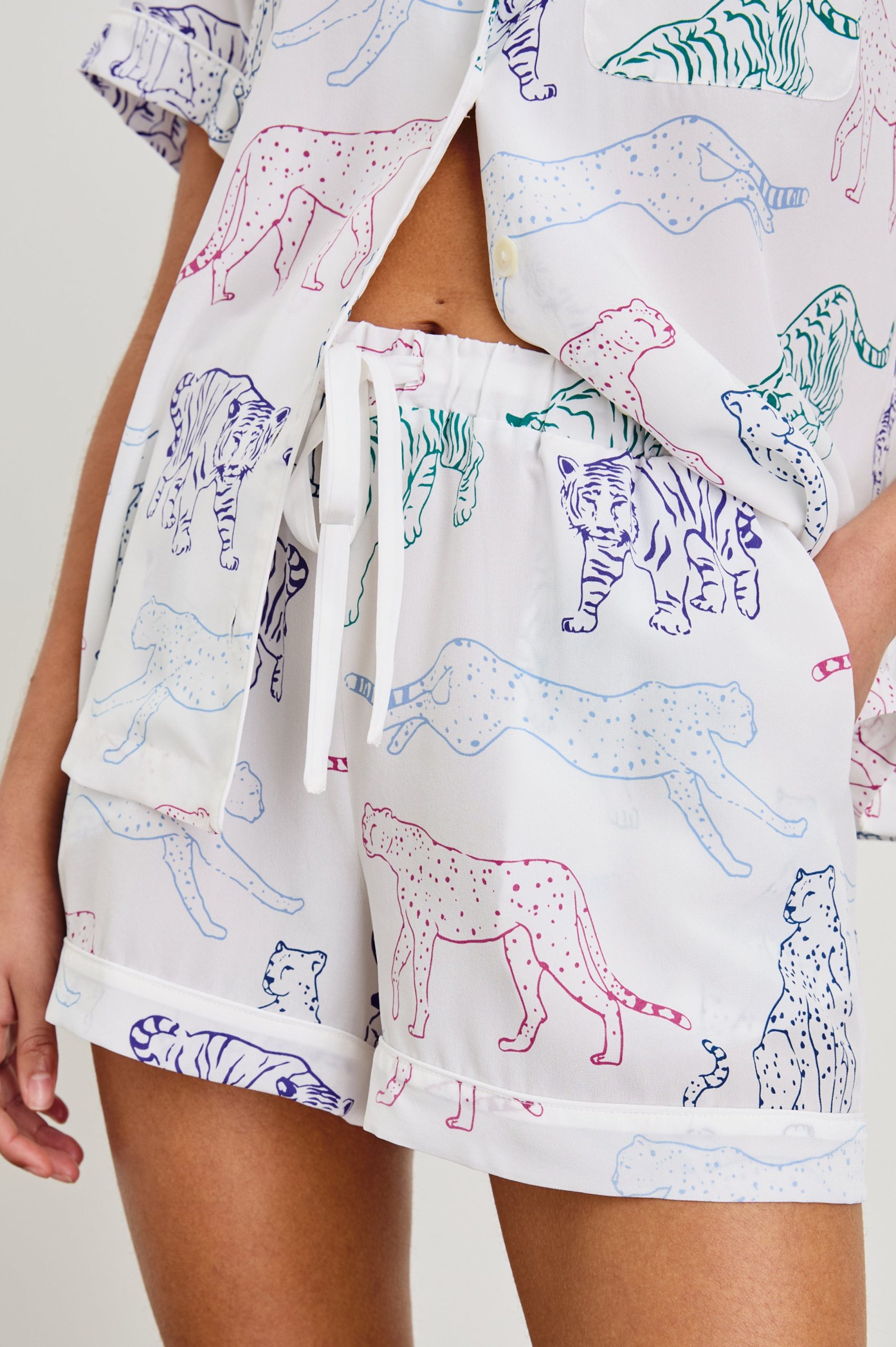 Whether you're just waking up or lounging around the house, you'll feel sophisticated and polished in this long sleeve set made from luxurious fabric. Made from super smooth satin crepe, this short sleeve button-down shirt and matching short set feature an elastic waist with an adjustable drawstring, piping trim and a single patch pocket at chest.